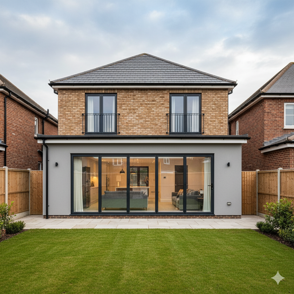 Built a 6m rear extension plus a double-storey side and rear addition. New open-plan kitchen/living/dining space downstairs, two large bedrooms and family bathroom upstairs. Full design, planning permission, brickwork, roofing, plumbing & décor handled.