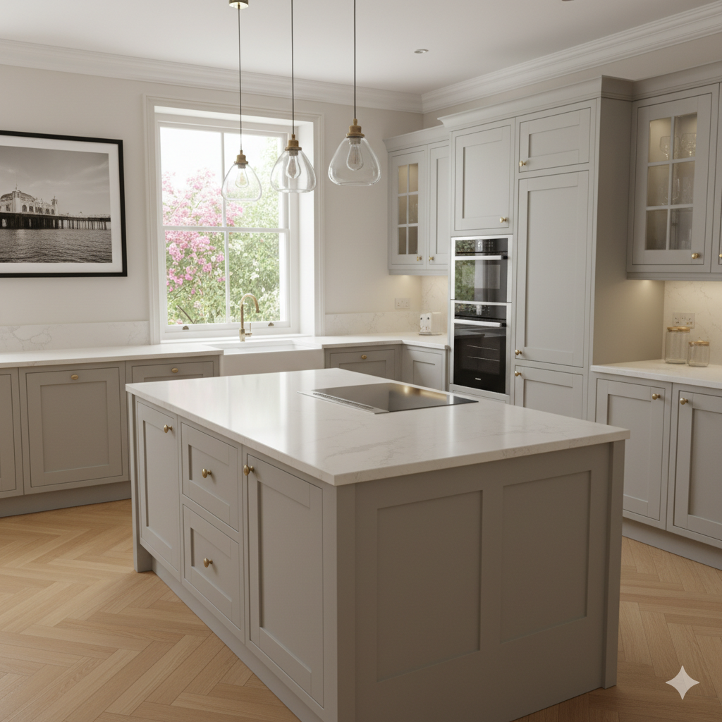 Modernised a period property: new shaker kitchen with stone worktops, integrated appliances; bathrooms upgraded to include walk-in shower, rain shower heads, heated towel rails; tiling, lighting & plumbing all renewed.